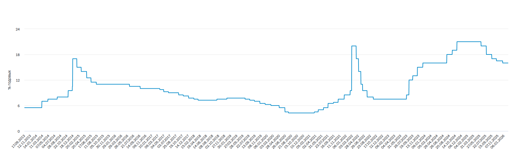 История изменений ключевой ставки (2013–2026)